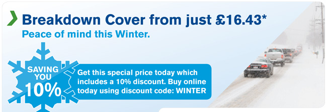 By buying our Breakdown Cover online now you can save an additional 10% from our already great value deals. Using the promotion code 'WINTER' you can get cover for as cheap as £16.43!* Don't wait until it's too late, get a quote from us now.